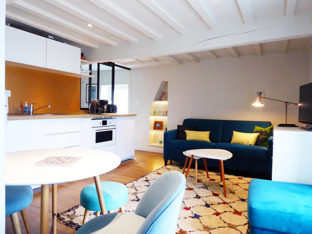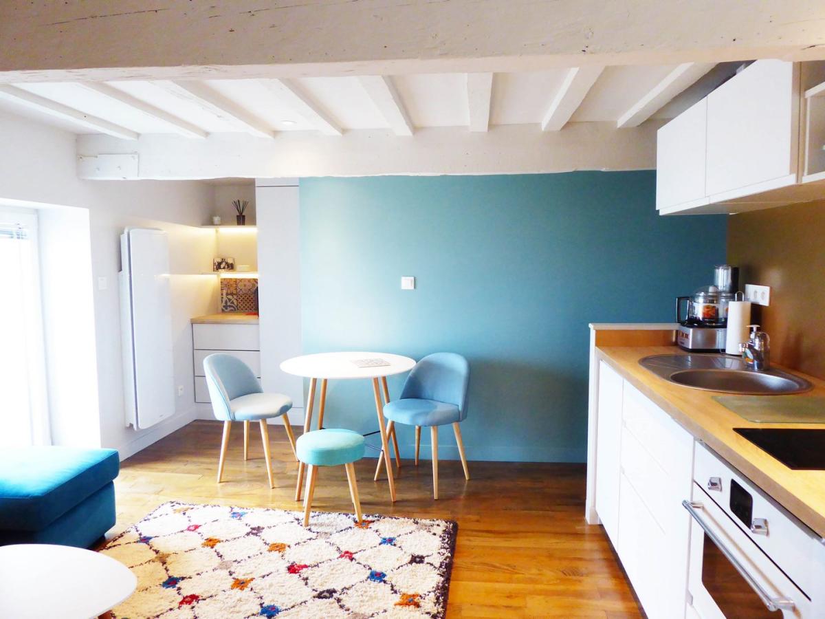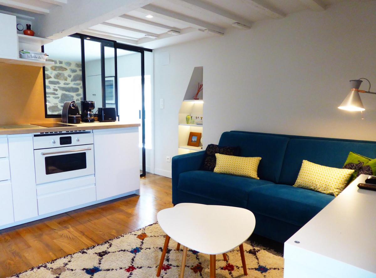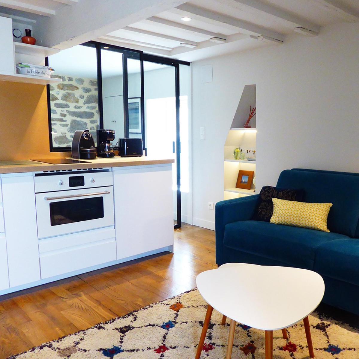 Nous avons eu le plaisir de travailler sur la réhabilitation totale d’un petit appartement situé à Saint-Malo. L’appartement de 30 m2 était resté dans son jus depuis les années 50. Sans salle de bains, ni toilettes, ni cuisine et aucun rangement. Il n’y avait qu’un point d’eau avec deux petites pièces encombré d’une multitude d’objets sans intérêt. Sobre, poussiéreux et bas de plafond, la tâche s’annonçait rude.