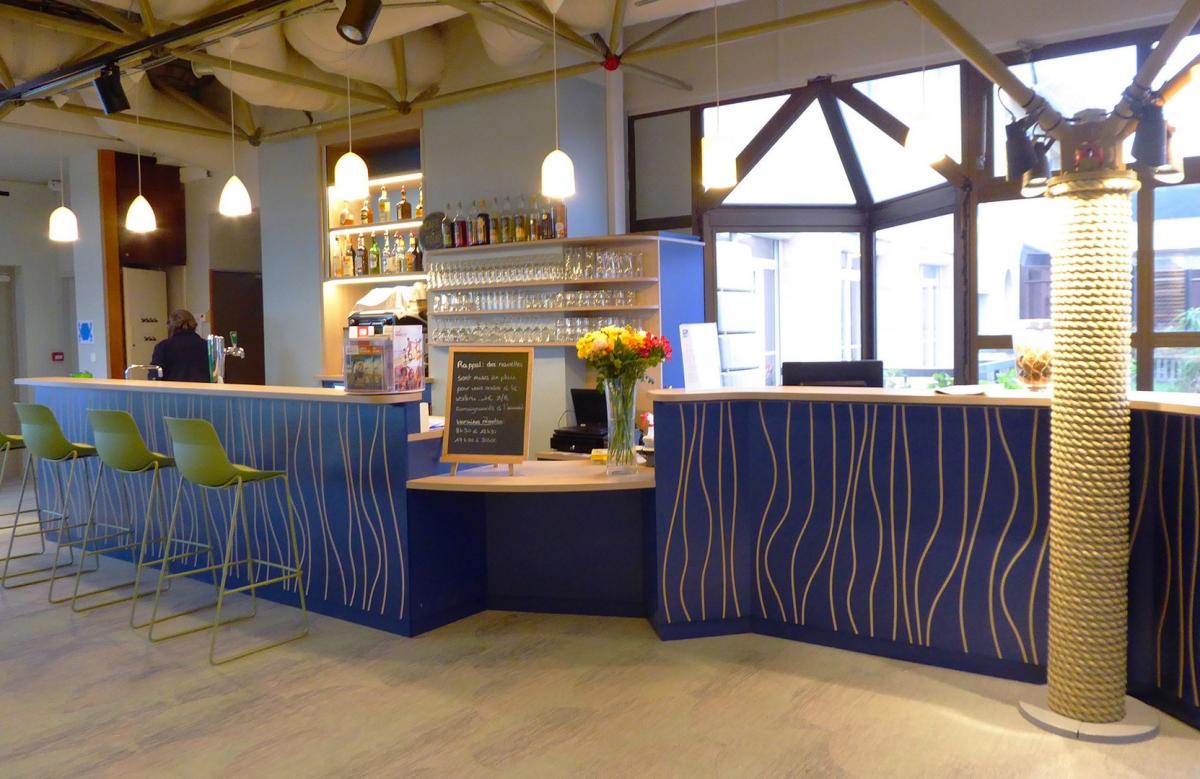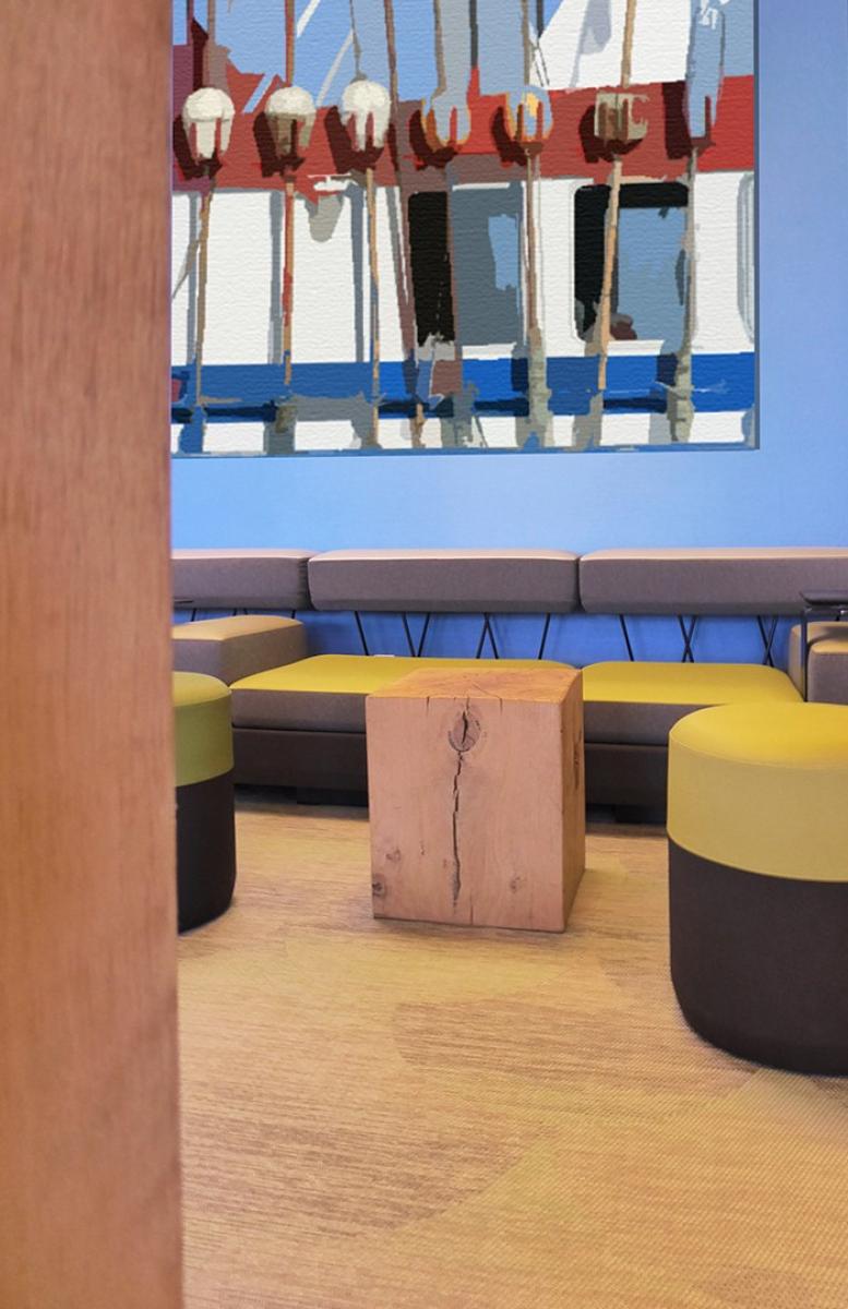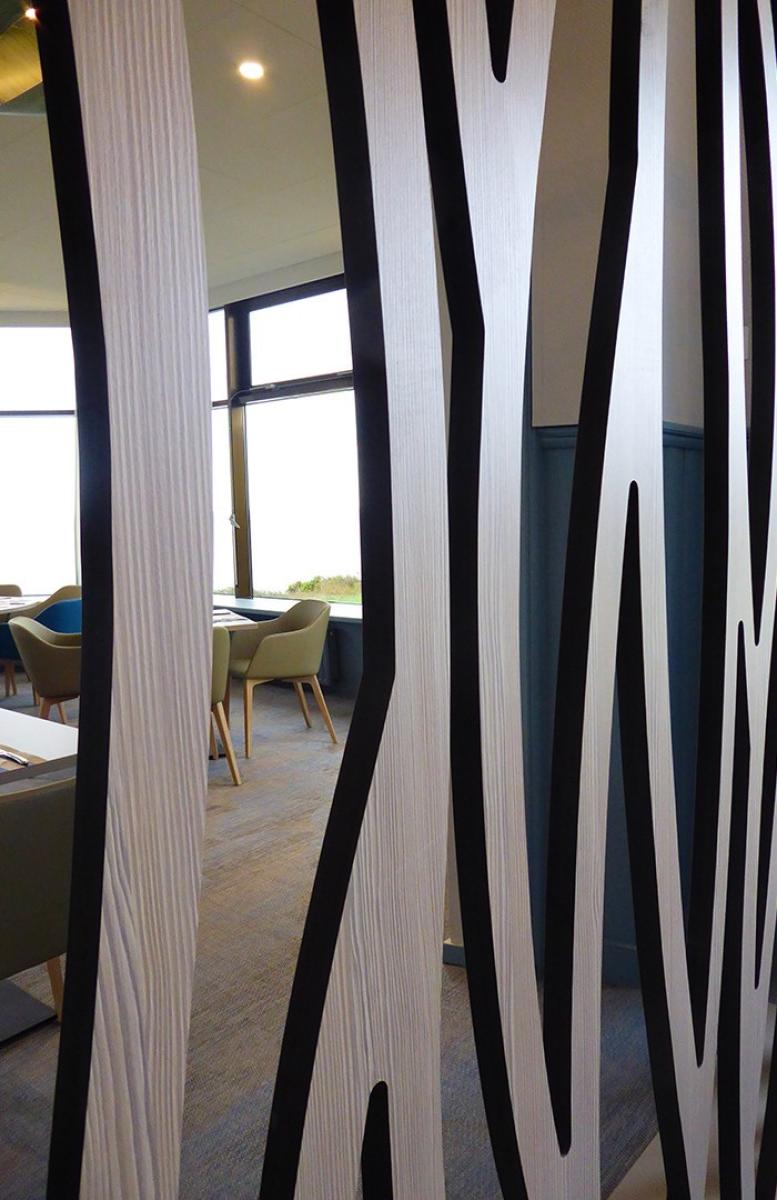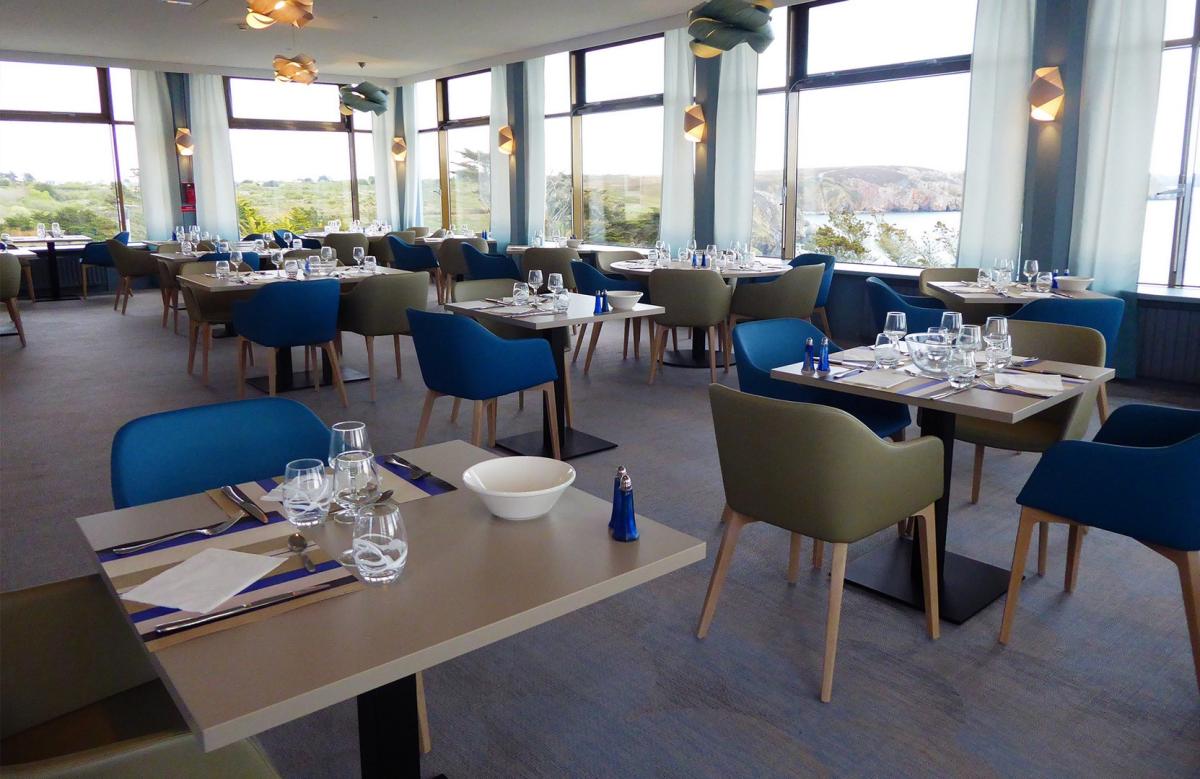 Relooking total du centre de vacances sur la pointe de Pen Hir. Dans les tons naturels de l’environnement extérieur pour une immersion totale dès l’intérieur vers l’extérieur.